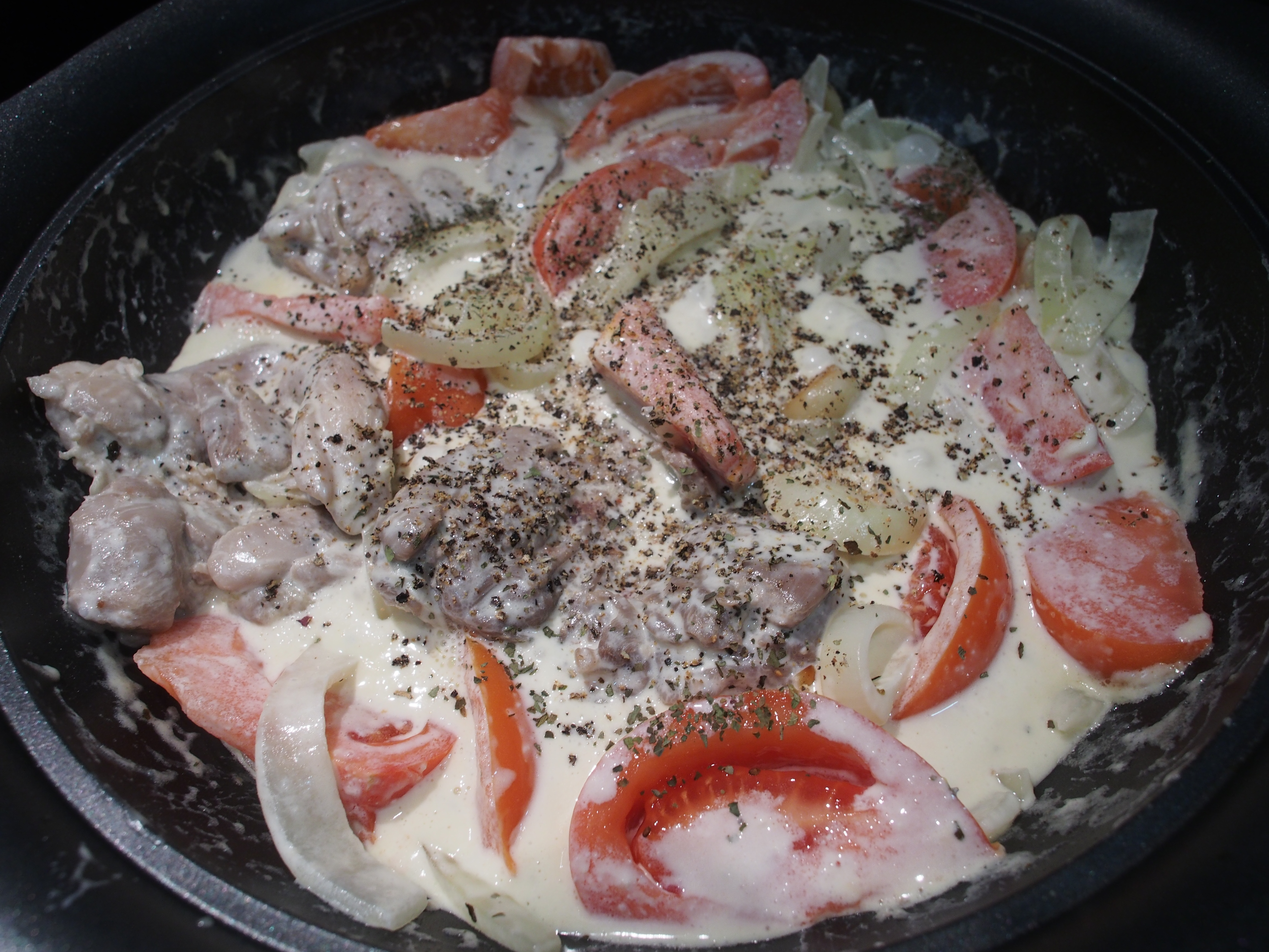 This dish is easily made from scratch and designed to be healthi(er)- no flour, butter, chicken fat, nor chicken skin! Once cooked through, the flavors of the onions, chicken, and tomato really blend with the cream to create a delightful sauce that will have your guests going back for more. This dish can be made into a pasta sauce or paired with potatoes, garlic bread, or even the stiffer brown rice varieties which can balance the rich sauce. I hope you enjoy and please do share a picture with me if you try it! : )