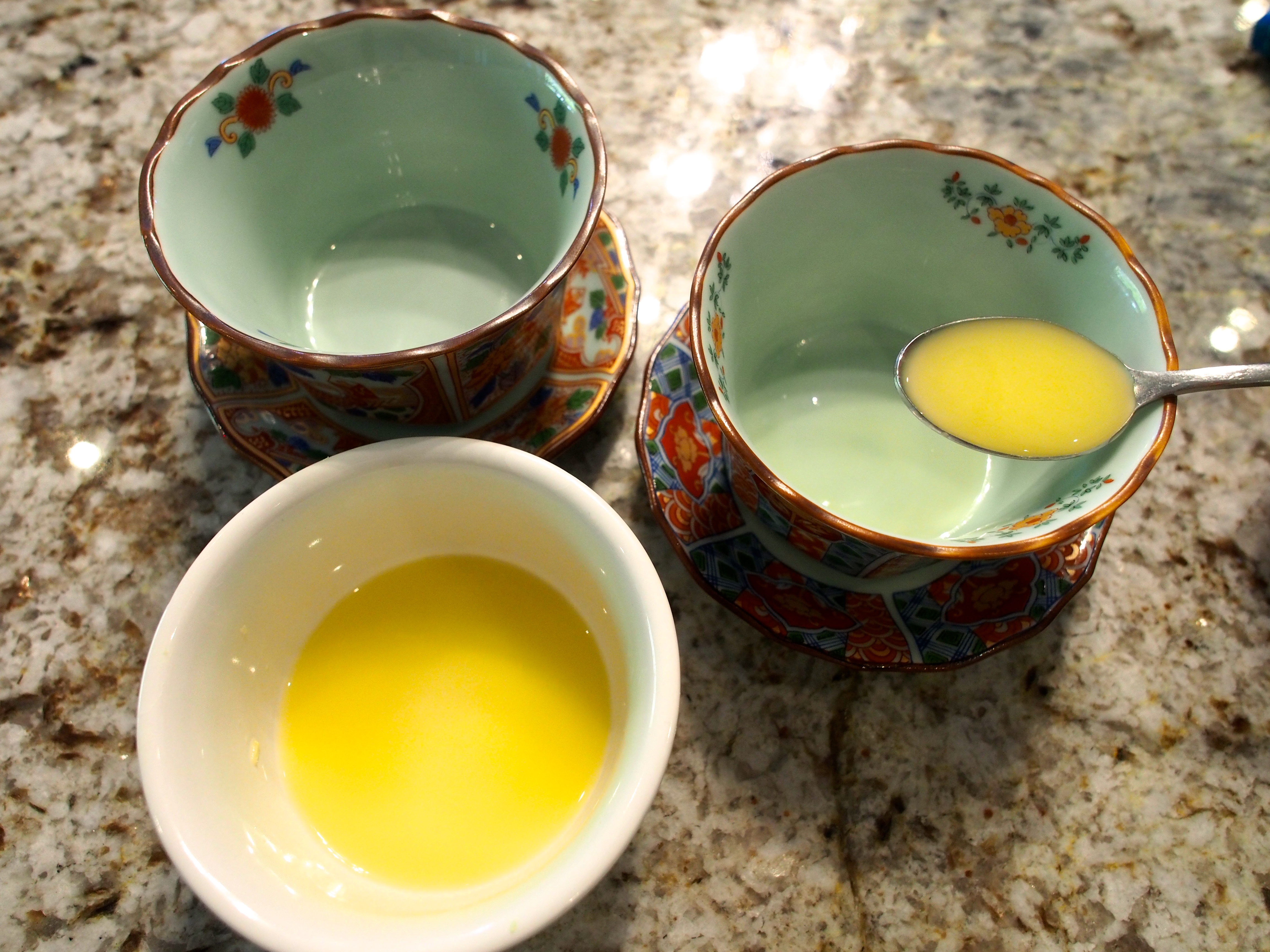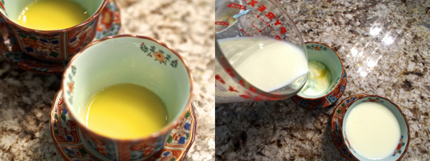 5. Immediately pour the milk in one fluid motion into each cup, don’t double pour. This ‘crashing’ motion of the milk into the ginger is where it gets it’s Chinese name of ‘ginger juice crashed with milk’. Let it sit for 10 minutes or until set.